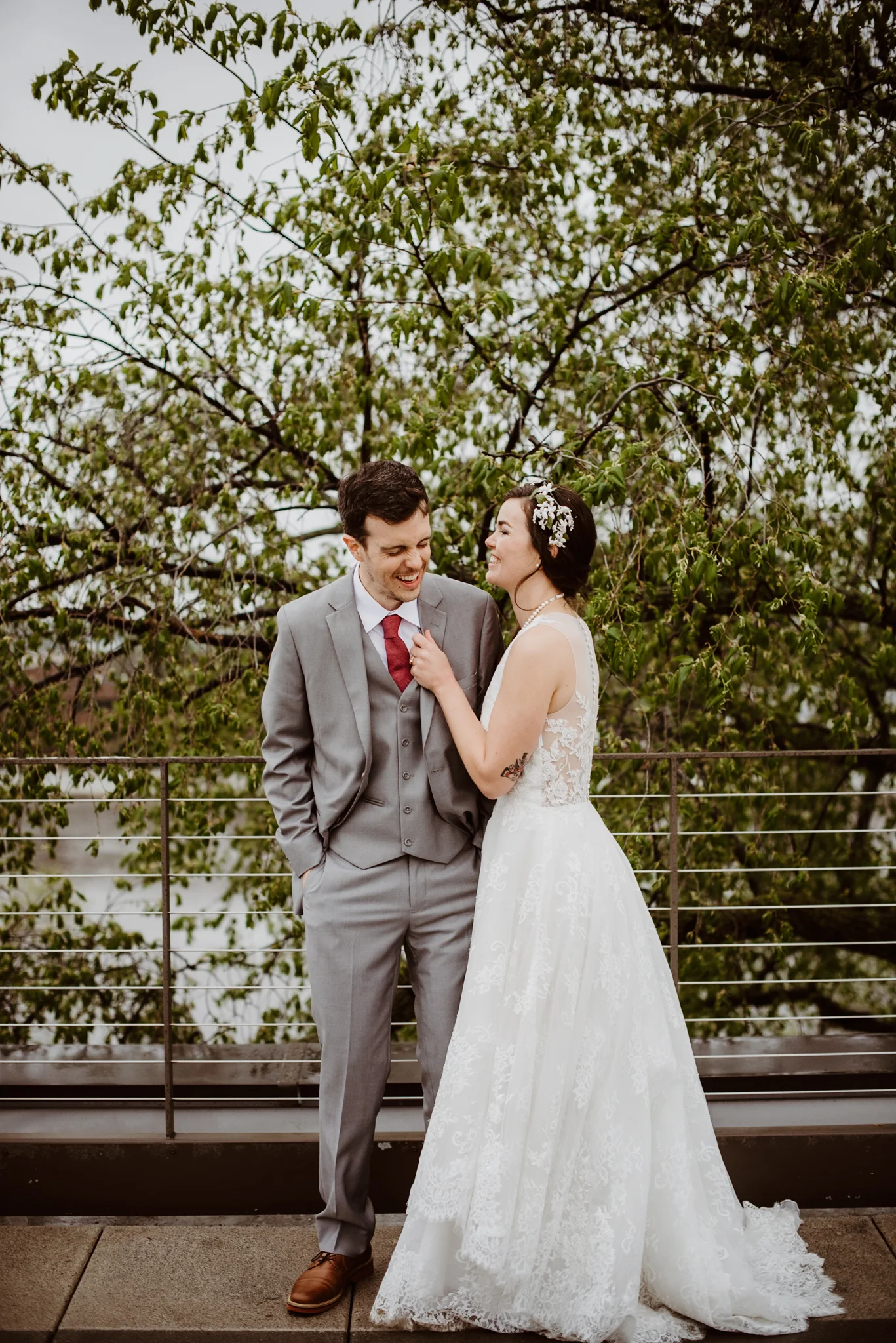Last Friday, May 11, 2018, Mattie and Kevin tied the knot in the backyard of their first home together, located in the up and coming Creston neighborhood of Grand Rapids. It was cold and rainy, and we had about two and a half seconds to do the first look and initial photos, but that's why I love Mattie and Kevin. They decided to go with the flow and their whole wedding was so beautiful because of it! As Mattie said "come hell or high water, we're doing the ceremony outside!" and we did. It was small and intimate, which always end up being some of my favorite ceremonies. They passed the rings around, and everyone held them in their hands while wishing the newlyweds well, and sending positive vibes their way. After the backyard ceremony, we headed into their adorable home for a cocktail hour, complete with champagne, bourbon, and some of Michigan's finest craft beer. For more craft beer appreciation time, we drove to City Built Brewing for warm tacos and cold brews. The rain finally let up around 7:30 pm so we ran outside for some super quick photos before it was too dark anymore. I'm so happy we had the sixth street bridge right across the street, and some beautiful cherry blossoms in the park to run around in. Mattie and Kevin, your wedding day was a dream to photograph, thank you so much for letting me be part of it! Can't WAIT to show you guys the rest of the photographs!
